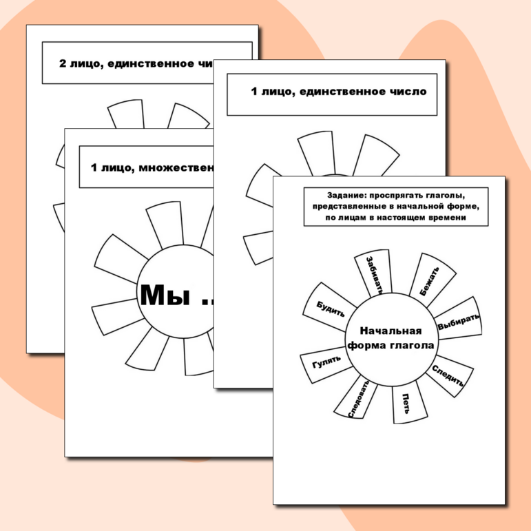 - Подготовка: Заранее напишите на бумажках глаголы, которые хотите повторить. Можно использовать как простые глаголы (бегать, прыгать, читать), так и более сложные (размышлять, анализировать, созидать).