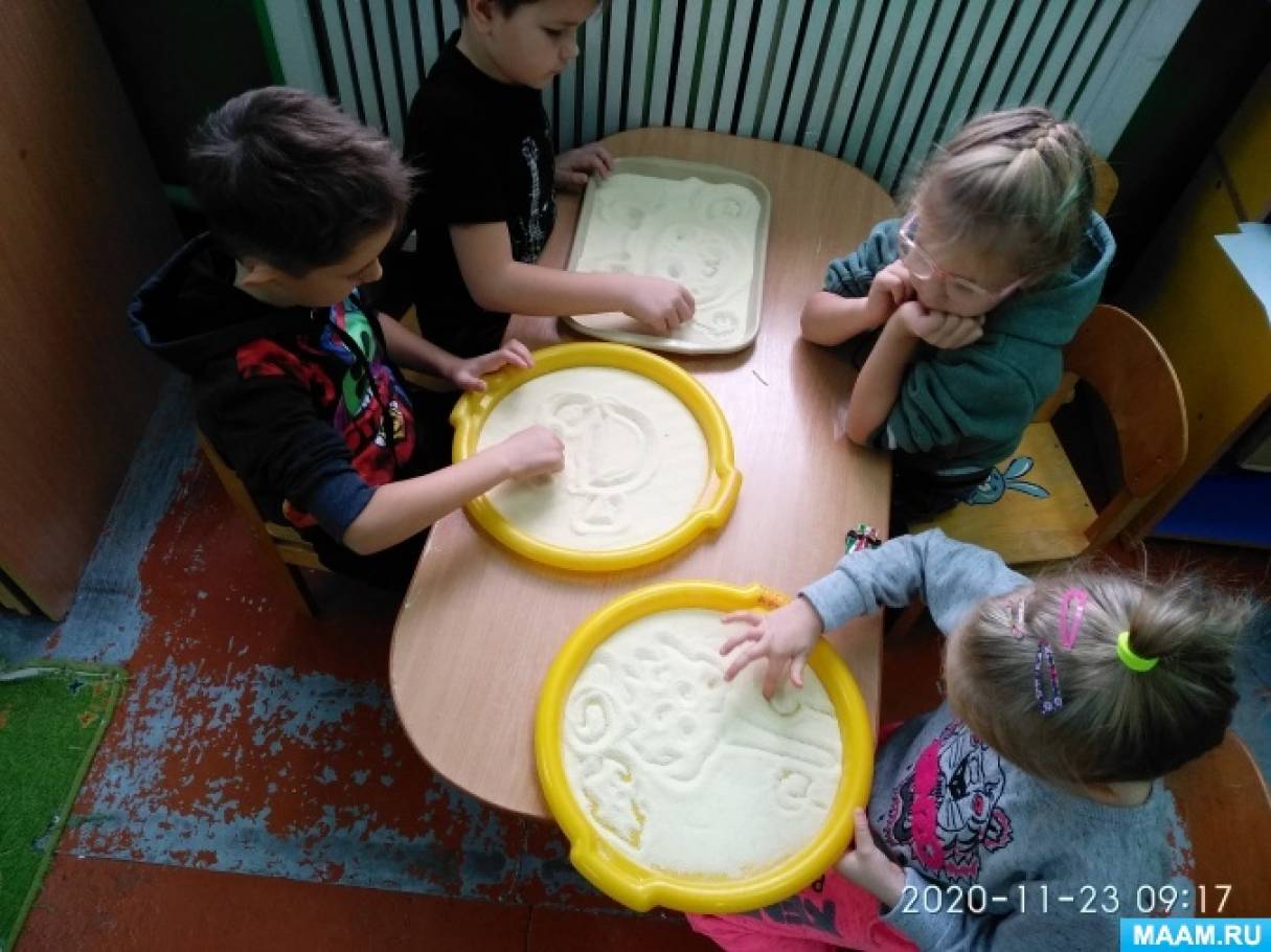 Насыпьте тонкий слой крупы (например, манки или риса) на поднос или противень. Предложите ребенку рисовать пальцем на крупе различные узоры, буквы или цифры. Это отличный способ развить воображение и творческие способности.