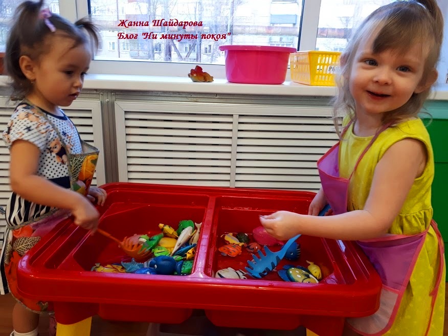 - "Рыбалка": Бросьте в таз с водой мелкие предметы (пуговицы, бусинки) и предложите ребенку вылавливать их сачком или ложкой. Эта игра развивает координацию движений и мелкую моторику.