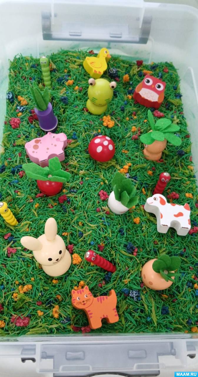 - Игра в "прятки" с макаронами в сенсорной коробке.