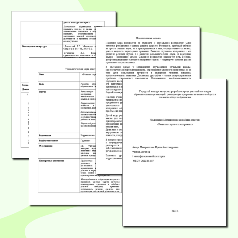 - Упражнения на развитие слухового синтеза